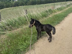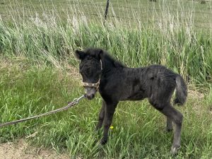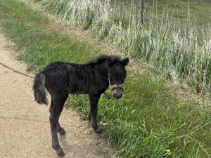 Fantasia is a fun spirited little girl. She loves to be scratched and petted. She has some white spots coming over her rump so I’m thinking she will have the Appaloosa blanket. Her mom and dad are both Appaloosas and are 30 inches tall. She is halter broke and will give me her feet. She loves to go for a walk. You can’t go wrong with this special little girl.